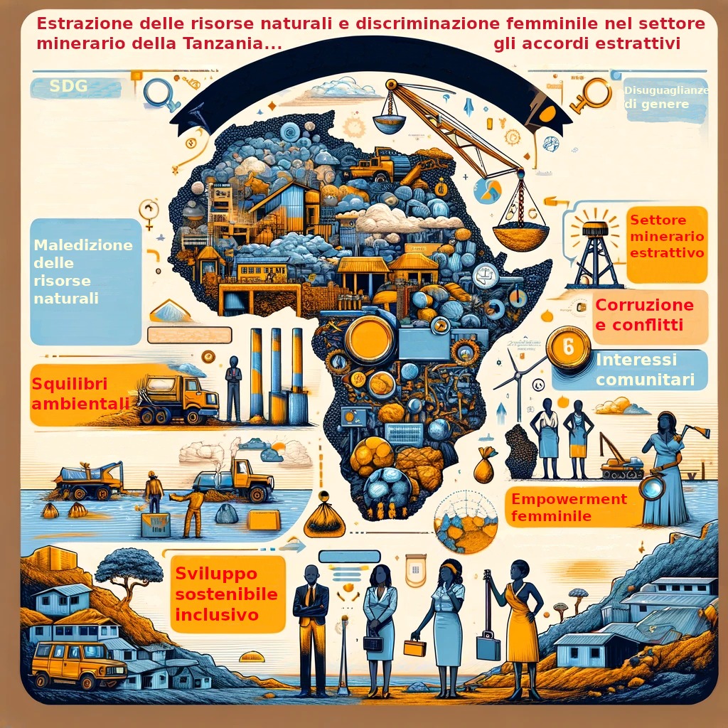 Sempre nel quadro della ricerca di un’integrazione tra temi chiave dello sviluppo, si può fare un passo in avanti e ragionare costantemente in termini di contrattazione estrattiva sensibile al genere nel settore minerario – in Tanzania come altrove – riferendoci a un approccio che riconosce e affronta in modo specifico le disparità di genere all’interno dell’industria mineraria. Questo concetto implica diverse componenti chiave: