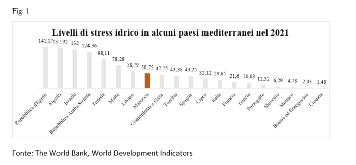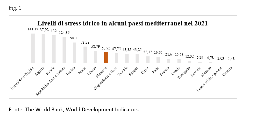 Negli ultimi anni il Marocco è diventato sempre più vulnerabile alle conseguenze della scarsità idrica. Nel 2021 l’indice di stress idrico ha raggiunto il 50,75%, collocando il Paese nella fascia di “alto stress idrico” secondo gli standard internazionali. Lo stress idrico misura infatti il prelievo di acqua dolce in rapporto alle risorse idriche disponibili. I dati citati provengono dalla Banca Mondiale e sono stati resi disponibili dalla FAO (consultati il 30 giugno 2025).